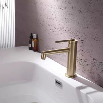 حنفية حوض غسيل بفتحة واحدة رائجة البيع بتشطيب ذهبي مصقول للماء الساخن والبارد مع مقبض واحد وخرطوشة سيراميك عالية الجودة من النحاس